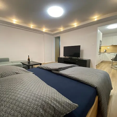 寝室1室のModern Flat Close To Old Town コシツェから徒歩で25分離れたスポロツェンスキ-・パビリオンまで行くことができます. 40m^2のアパ-トではWi-Fiを利用できますし,車でお越しのお客様のために駐車場もあります.